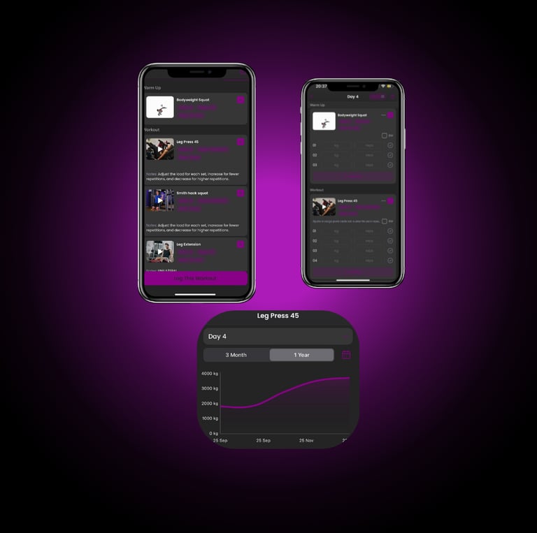 Each program comes complete with easy-to-follow demonstrative videos, ensuring you feel confident and comfortable as you exercise. Additionally, through load and difficulty annotations, we can track your performance progress.