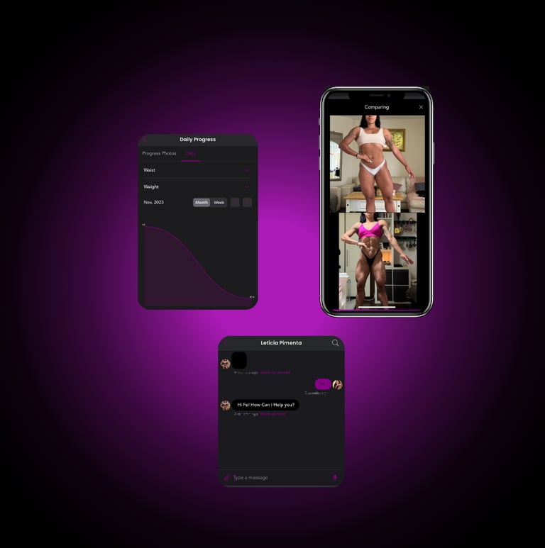 The platform allows you to easily track your progress week after week. Simply record your weight, take progress photos, and fill out a wellness form to assess and continue our work effectively. You will also have access to chat within the platform to contact me if you have any questions, schedule video calls, and you can also send me your videos for execution correction.